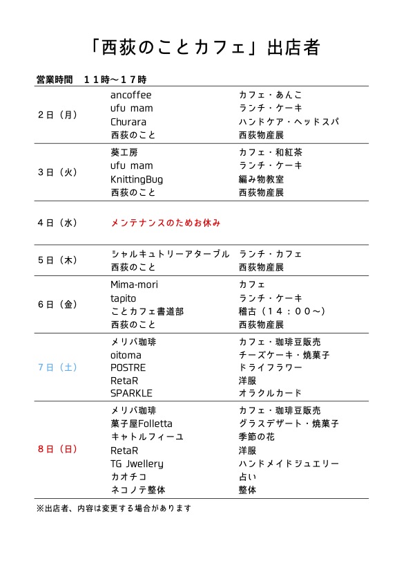 下のカレンダーが表示されない場合はこちらのgoogleカレンダーへのリンクをクリックしてください