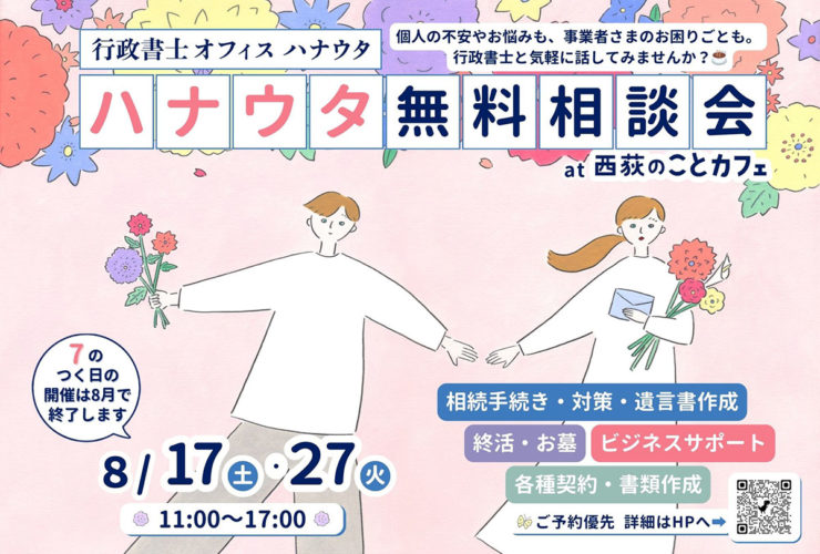 行政書士オフィス ハナウタ 無料相談会 8月7日