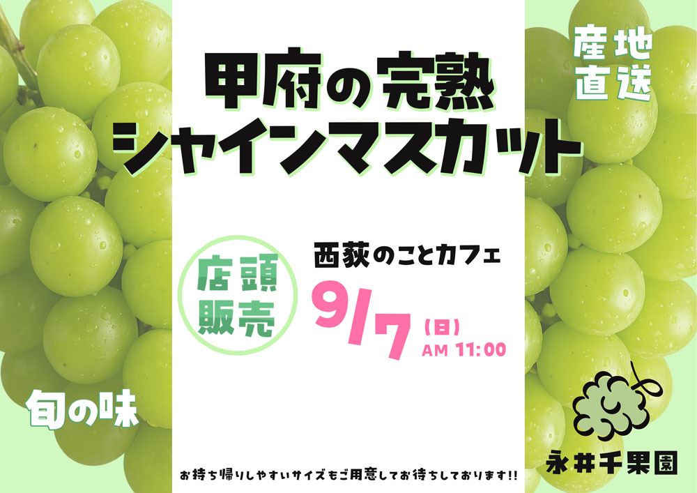 「9/7(日)甲府の完熟シャインマスカット 店頭販売」
