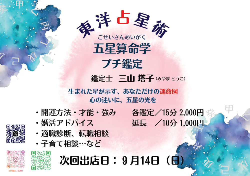 五星算命学 プチ鑑定 三山塔子