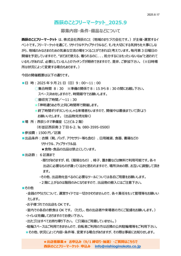 4. 西荻のことフリーマーケット開催(2025年9月)