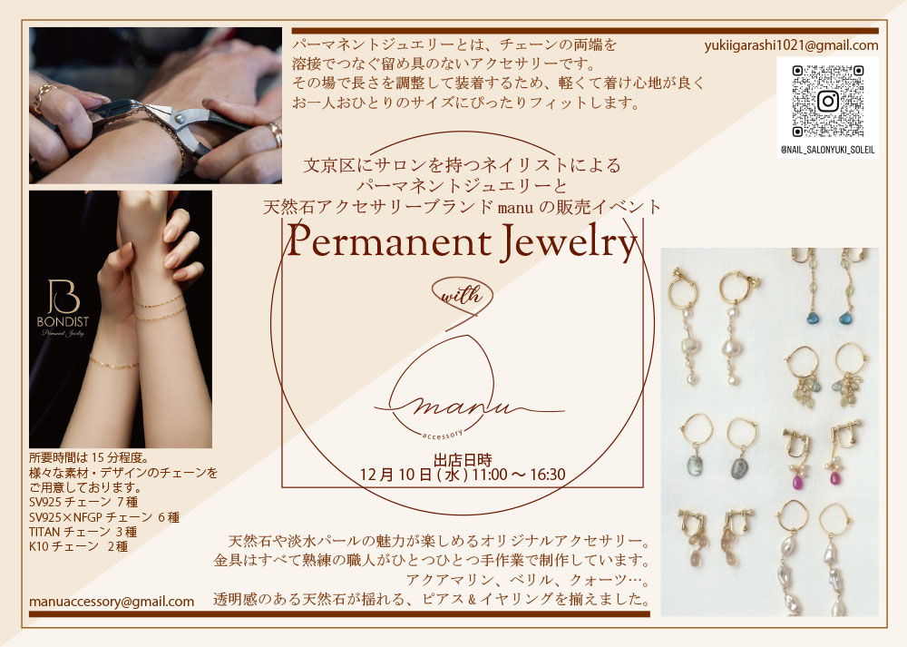 パーマネントジュエリー&天然石アクセサリーの販売会
