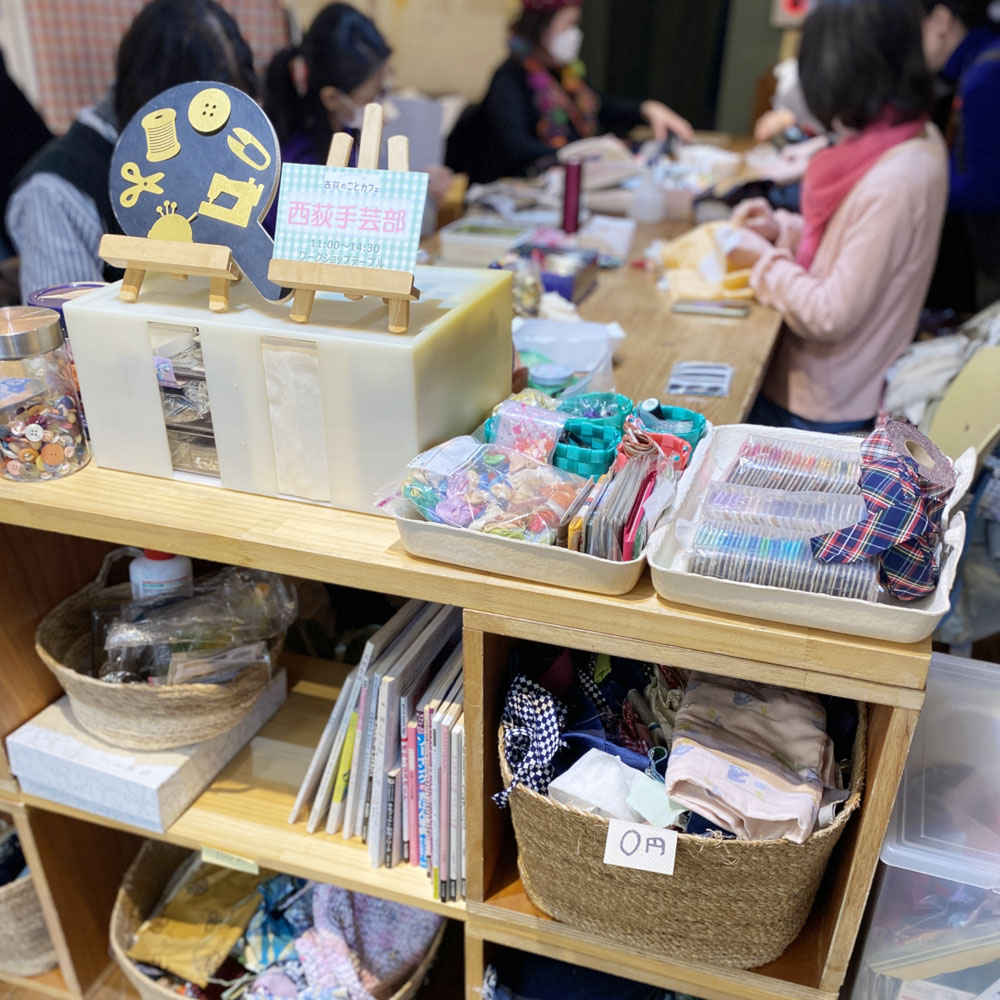◇布、糸、針、ハサミ、ミシン、アイロン、、、手芸用品は何となく揃ってます。◇講師がいてみなさんと同じものを作る活動ではなく、手芸部という場の共有が目的の活動が西荻手芸部です。手芸部の材料や道具を使いながら、自由に作りたいモノを作って下さいね又、ご自分が作っている最中の手芸作品などを持ち込んで作業して頂いても結構です。カフェ店内での作業は気分も変わって楽しいと思いますよ。参加者のみなさんと手芸のお話で盛り上がりあがりながら、気軽に手芸を楽しみましょう。