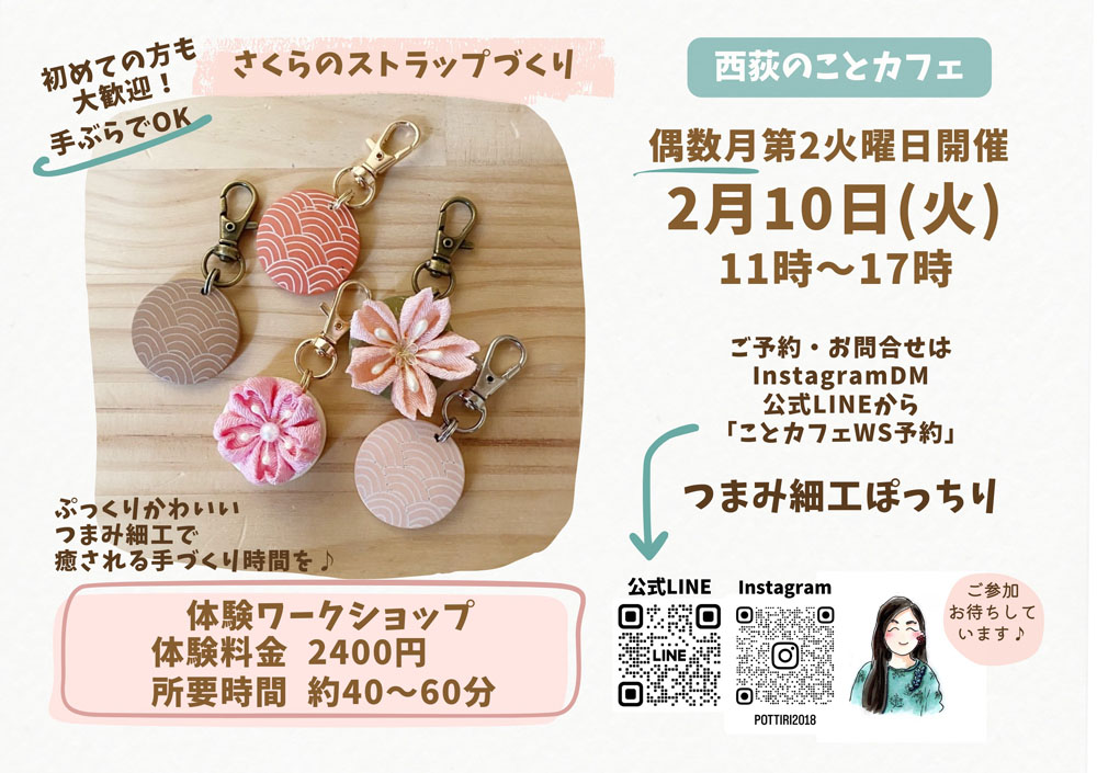 さくらのストラップづくり つまみ細工ぽっちり